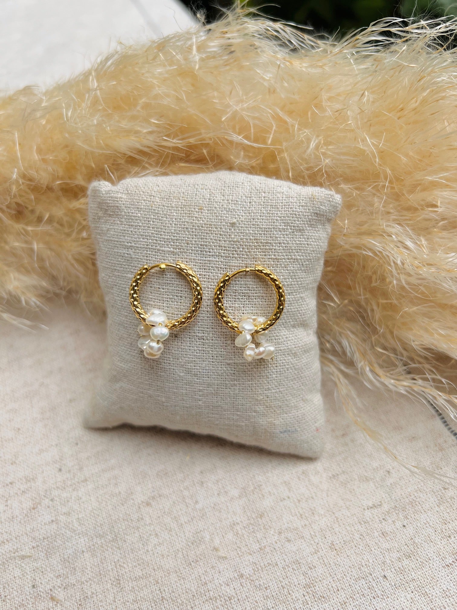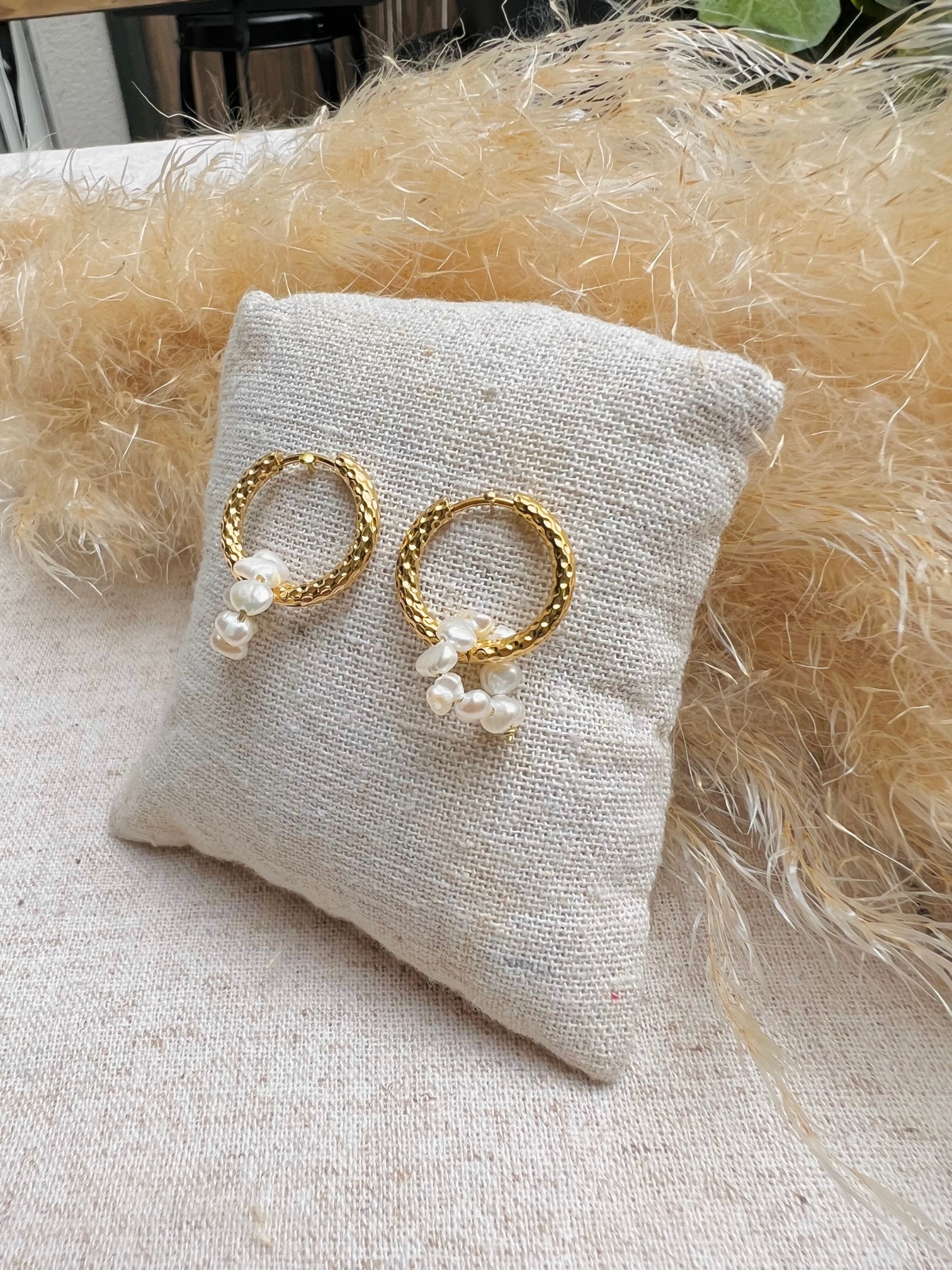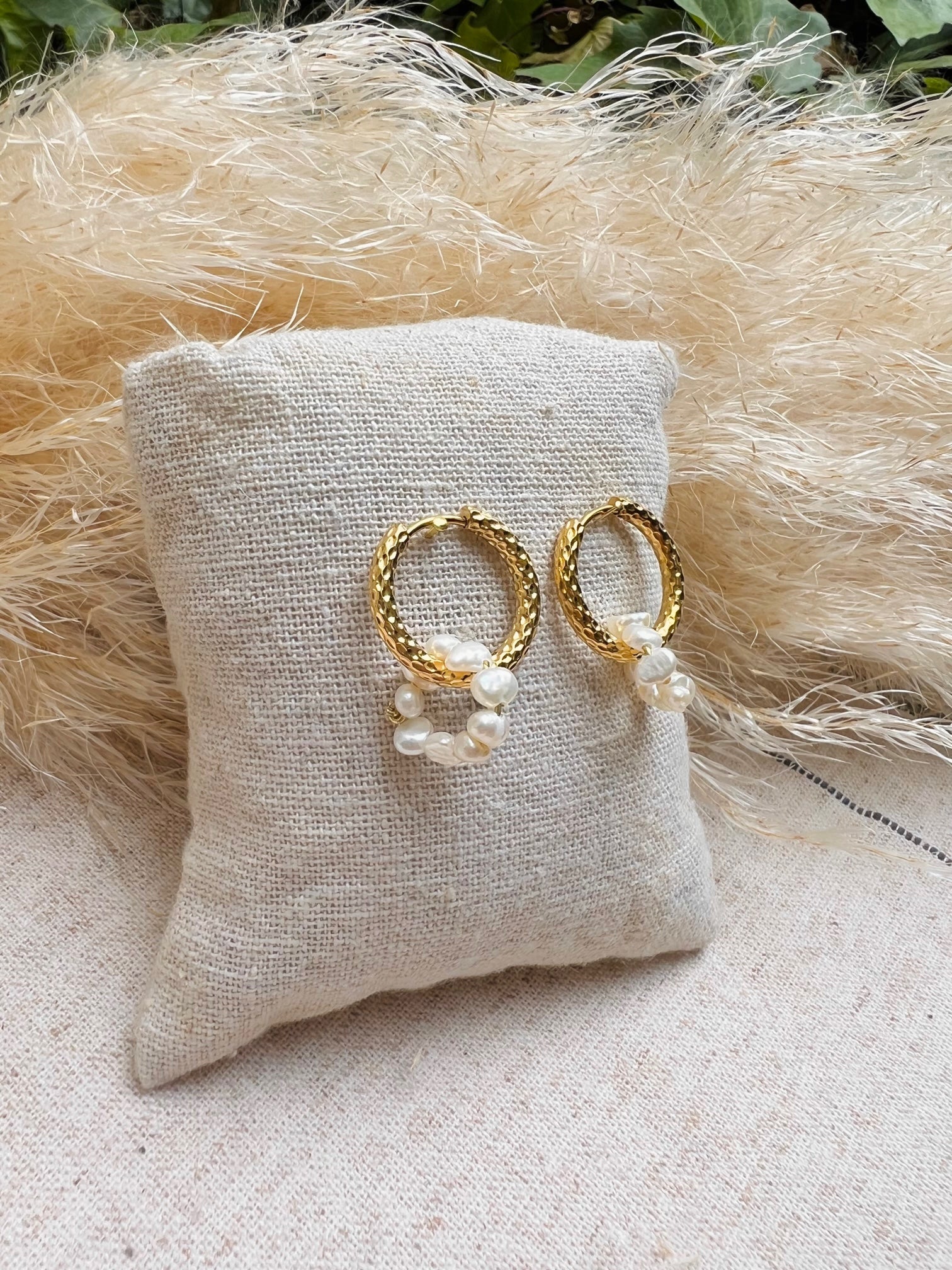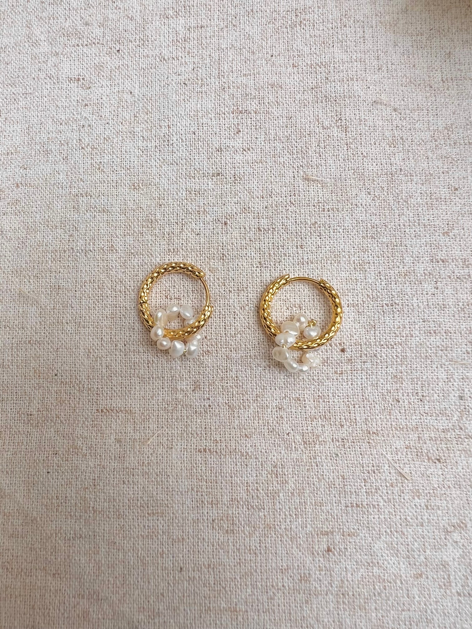 Les créoles Isa sont composées d’un anneau de 20 mm en acier inoxydable et d’une boule de perles naturelles d’eau douce blaches.