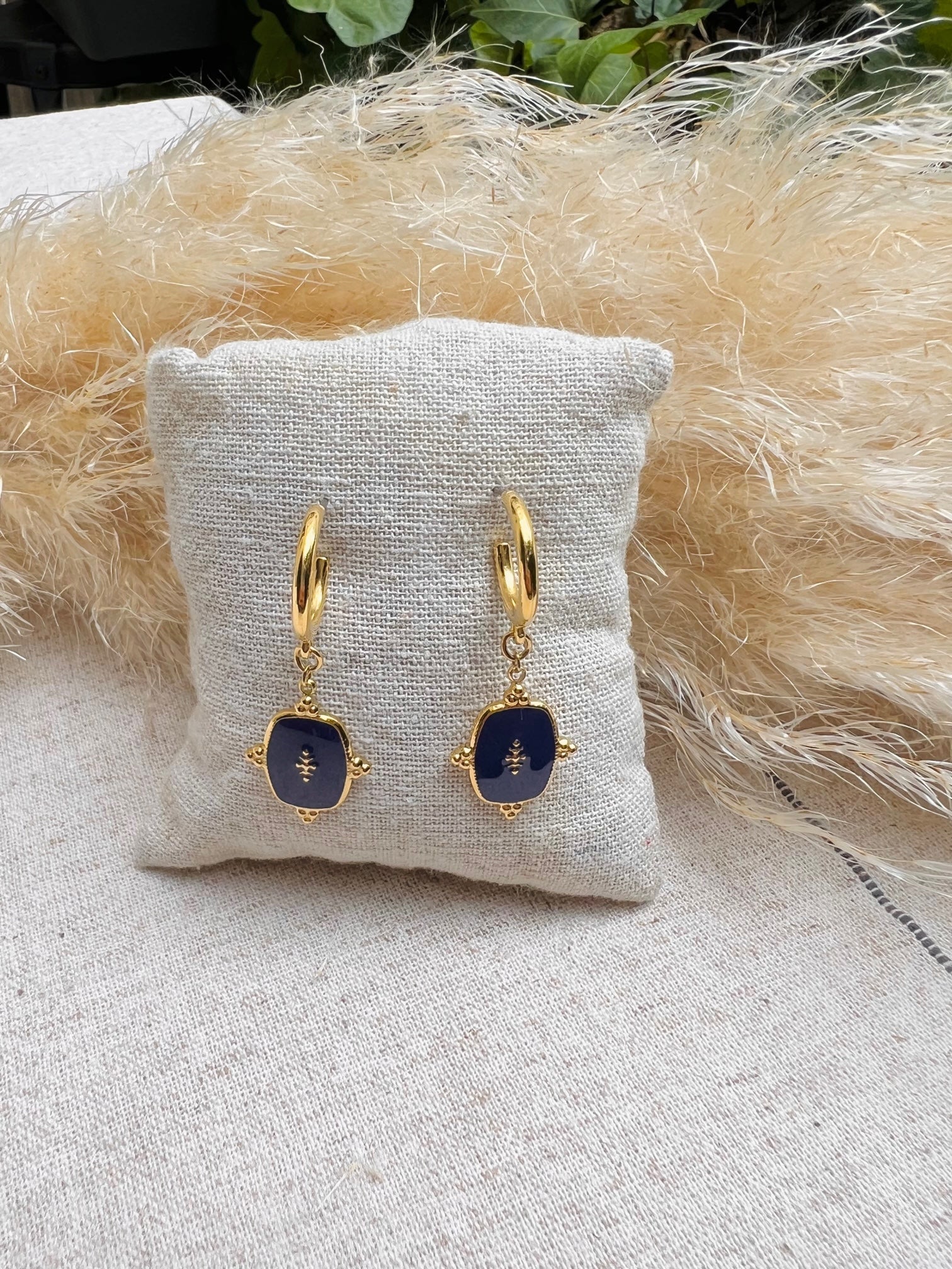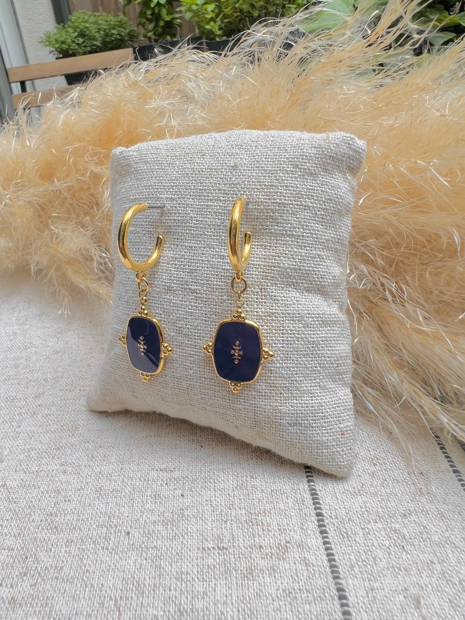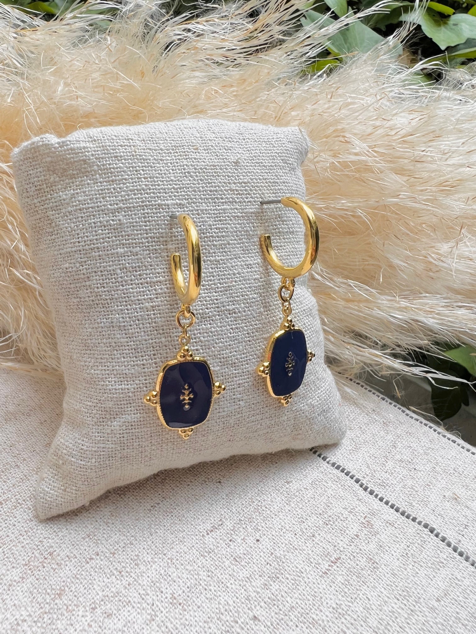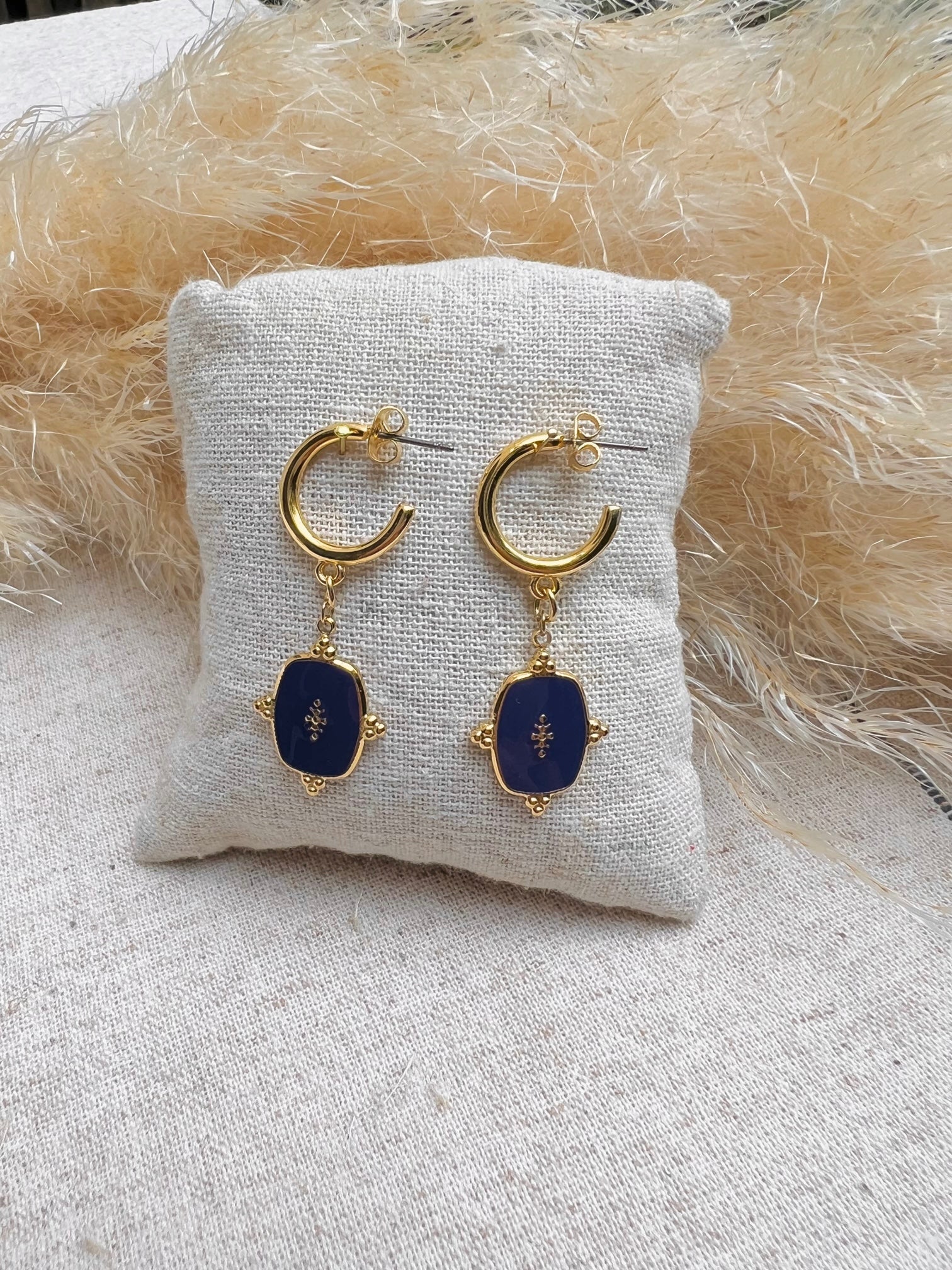Les créoles Laura sont des demi-créoles en acier inoxydable munis d’un apprêt en résine bleu indigo. Cette paire de boucles sublimera vos plus belles tenues du quotidien avec élégance.